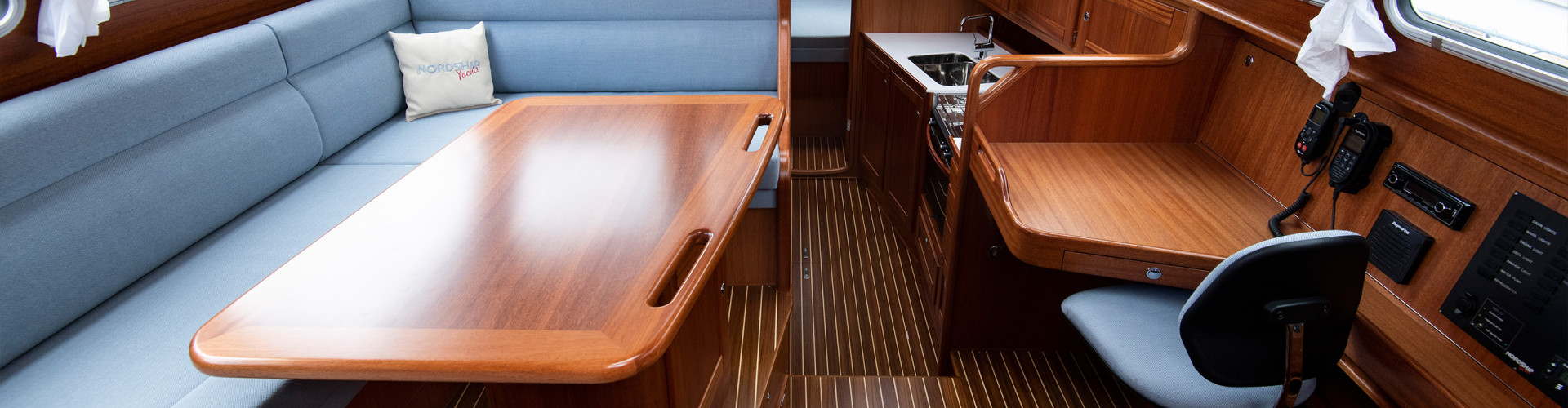 On deck, she remains true to the Faurby deck saloon philosophy, bringing all lines back to the wheel so the person at the helm is always in control and everything is simply laid out. Like all Faurby DS she’s fitted with a self-tacking jib as standard to keep sail handling and sailing her as easy as possible.