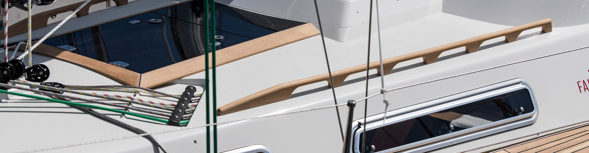 On deck, she has high cockpit coamings for safety and shelter. The coamings also incorporate rope bins for the sail control lines that are led aft from the coachroof, keeping the cockpit wonderfully line-free. The Faurby 370 is available with either a wheel or tiller according to your preference. The mainsheet is to hand, in the cockpit, forward of the helm, making her east to sail with just one person on watch.